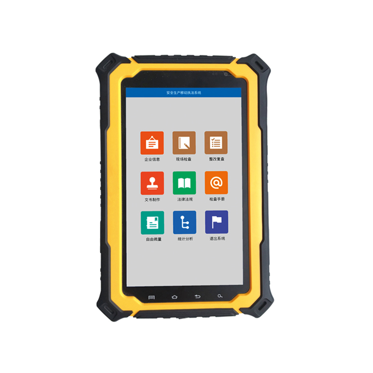 KJD3.7(B)安全生产移动执法终端是以7英寸平板电脑为载体的安全监察执法工具。通过与服务器后台运行的“安全生产执法信息系统”进行信息传输。该设备移动终端、无线网络、执法软件三者有机结合,实现任意地点和时间的无缝接入,内置完善统一的执法工作制度、处罚标准、规范的自由裁量,广泛应用于煤矿、非煤矿山,开发区、工业园区等功能区,促使安全执法工作的规范化。
